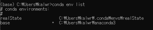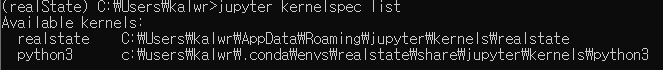 그리고 realState 가상환경에서 주피터 커널 목록을 확인할 수 있습니다.
