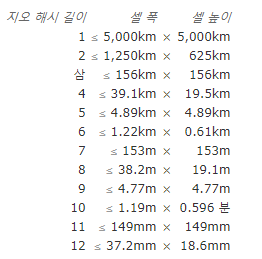 아래 표를 보시면 각 레벨 별 분해능 확인이 가능하니 참고만 하세요.