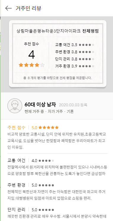 또한 교통점수, 관리점수, 주변환경, 거주환경까지도 점수를 주고 있습니다.