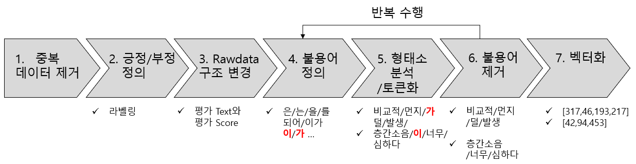 한국어의 경우 영어와 달리 형태소 분석 과정이 포함됩니다.