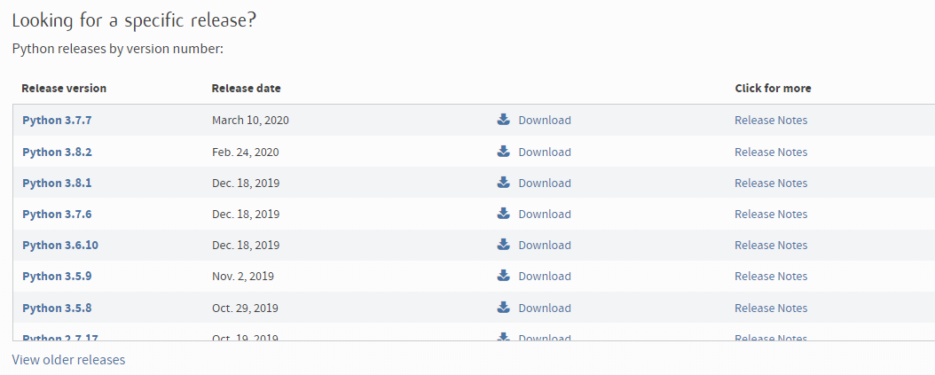 현재까지 나온 버전 중 가장 상위 버전은 3.7.7 이므로 이걸로 다운받도록 하겠습니다.
