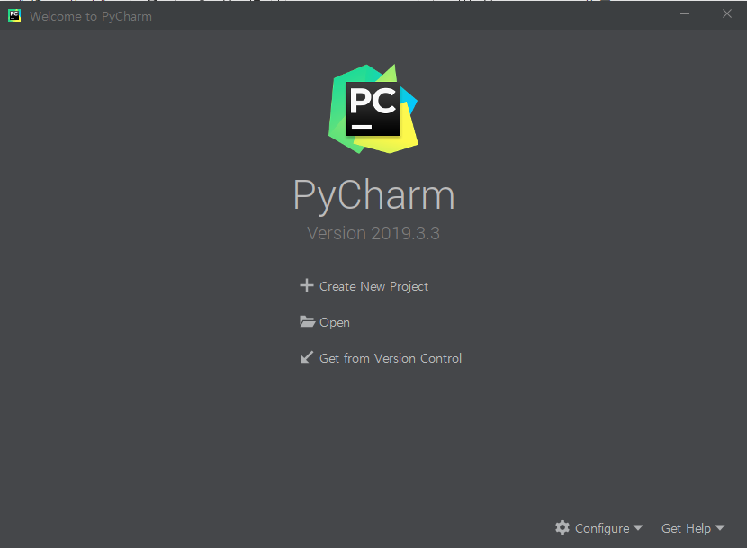 설치가 완료되면 바탕화면에 pycham 아이콘이 생깁니다. 실행해보면 아래와 같은 창이 뜨는데