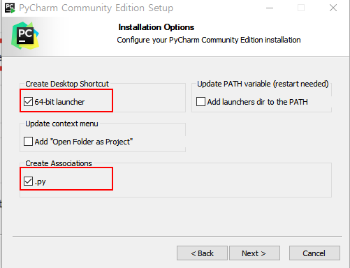 그리고 .py 파일을 pycham에서 실행할 수 있도록 box 체크합니다.