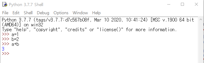 IDLE을 설치한 후 뜨는 화면에서 아래와 같이 간단히 테스트해 볼 수 있습니다.