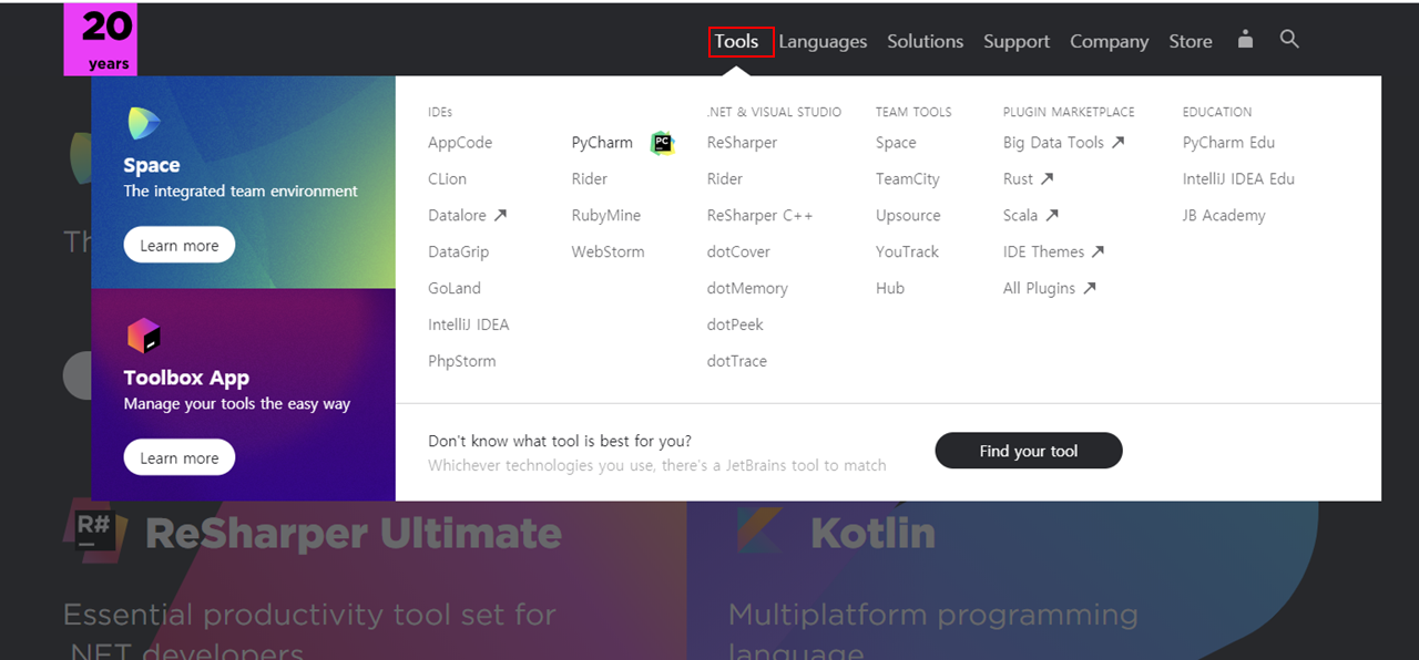 pycham 다운로드를 위해 https://www.jetbrains.com/로 이동합니다.
